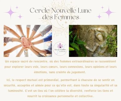 Chaque mois, au rythme de la Nouvelle lune, nous nous retrouvons en petit groupe pour créer un espace sécurisant où chacune peut déposer ce qu’elle vit, écouter, ressentir et simplement être — sans jugement.